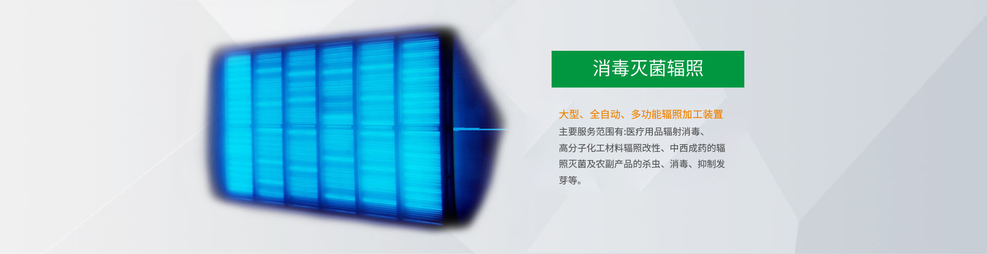 公司座落在南昌市小藍(lán)經(jīng)濟(jì)開發(fā)區(qū),是從事輻照技術(shù)加工服務(wù)的現(xiàn)代化企業(yè).主要服務(wù)范圍有:醫(yī)療用品輻射消毒、高分子化工材料輻照改性、中西成藥的輻照滅菌及農(nóng)副產(chǎn)品的殺蟲、消毒、抑制發(fā)芽等。本公司首期投資3000萬元建設(shè)了一座具有國內(nèi)領(lǐng)先水平的大型、全自動、多功能輻照加工裝置,此裝置是以鈷-60為能源,設(shè)計裝源200萬居里,具有自動化程度高、通用性強(qiáng)...